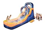 Inflates in less than 2 minutes! Scale the climbing wall of this huge 18.5' long slide and go for a wet and wild ride! Slide down the two steep drops through the cascading waterfalls into the giant splash pool! Heavy-duty Dura-Tech construction ensures lasting strength and durability while the constant airflow helps resist small tears and punctures.