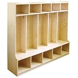 Coat locker fits into any room and accommodates up to 10 children. Unit features bench coat hooks and cubbies above and below for storing lunch boxes backpacks and more. Assembly required. Adult supervision recommended. 54L x 13D x 48 H.